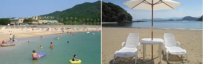 石垣で整備された、白砂がとても美しい砂浜です。波も穏やかで、ファミリーにとても人気です。